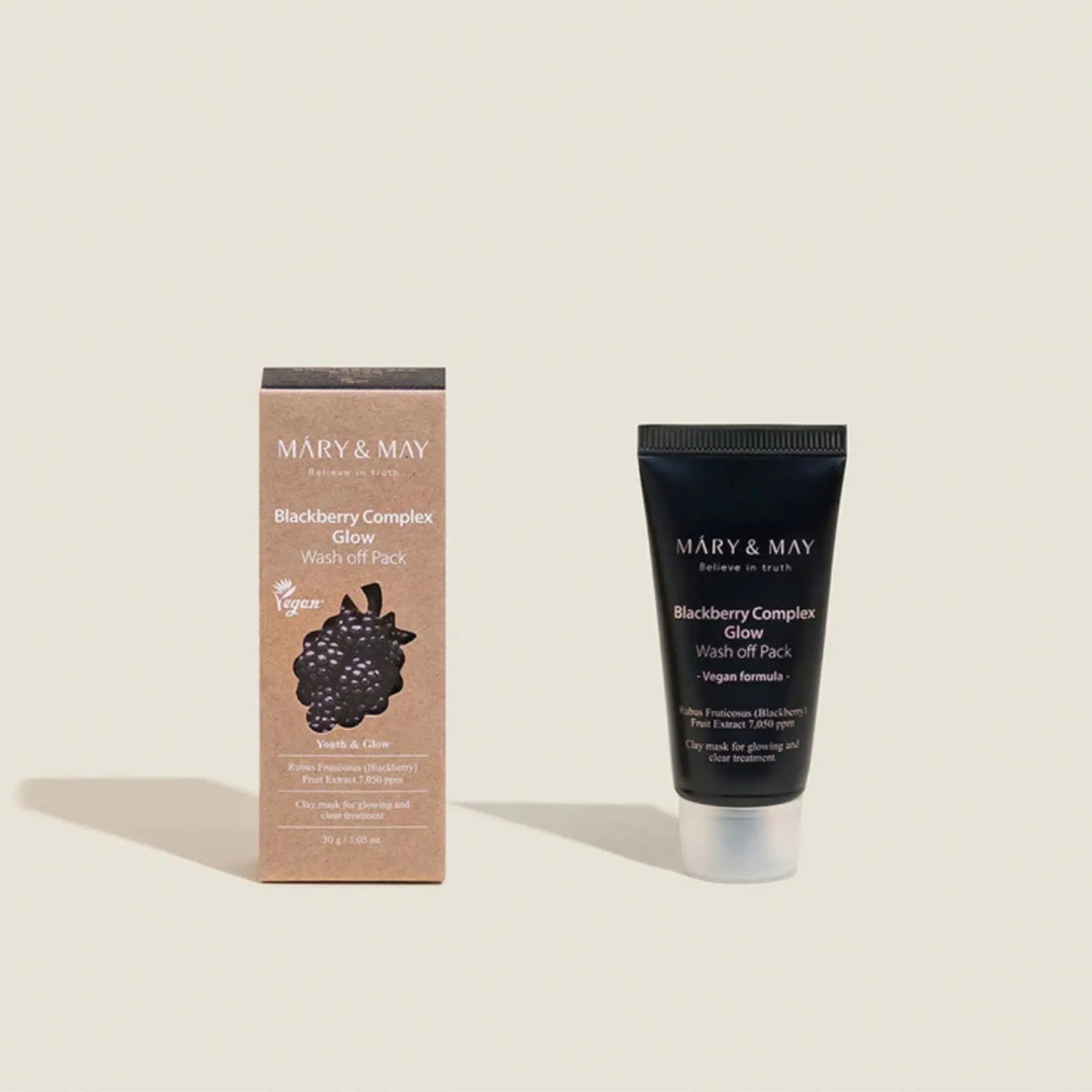 Introducing Mary & May's Blackberry Complex Glow Wash Off Pack, a rejuvenating treatment formulated for all skin types. Enriched with a potent blackberry complex, this pack nourishes and revitalizes the skin, promoting a radiant and healthy glow. Ideal for tired or dull skin, it gently exfoliates, removing impurities and promoting improved skin texture.
